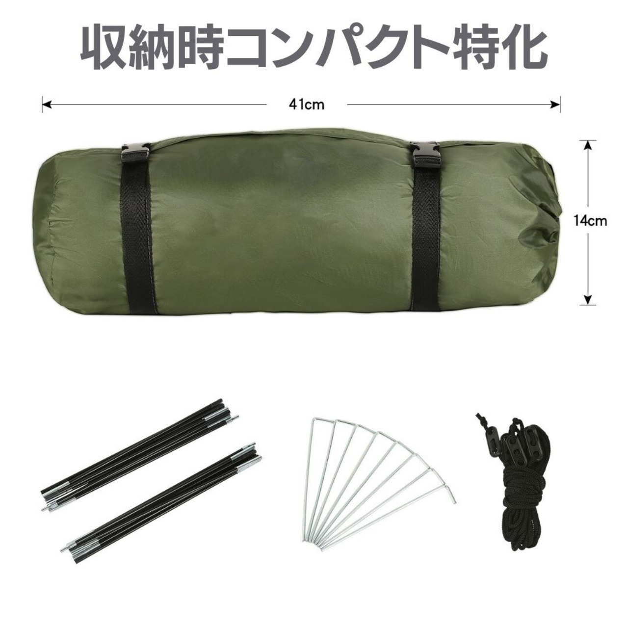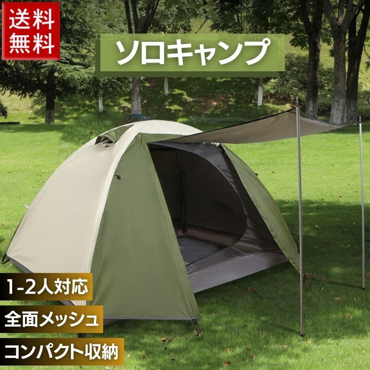 アウトドア キャンプ テント 1人用 ソロキャンプ カーキ ポール付き ドームテント 一人用 ツーリング