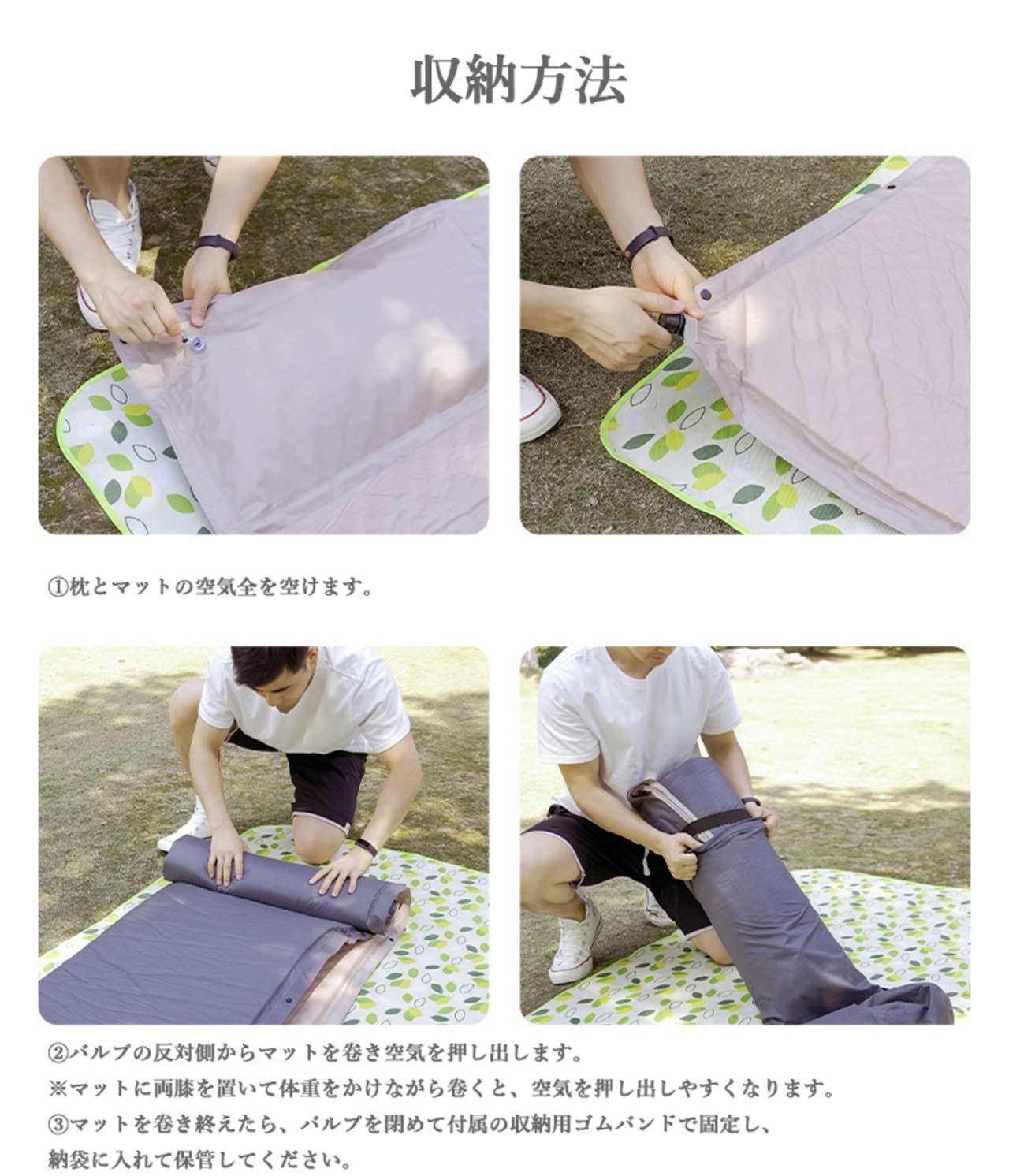 ・空気栓を開けると自動で膨らみます。